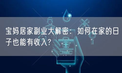 宝妈居家副业大解密:如何在家的日子也能有收入?