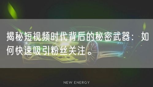 随着互联网的普及和技术的飞速发展,短视频已成为大众获取信息、娱乐消遣的重要途径。在这个时代,无论是个人创作者还是企业,都渴望通过短视频快速吸引粉丝关注,扩大影响力。那么,如何做到这一点呢?接下来,让我们一起揭秘短视频时代背后的秘密武器。
